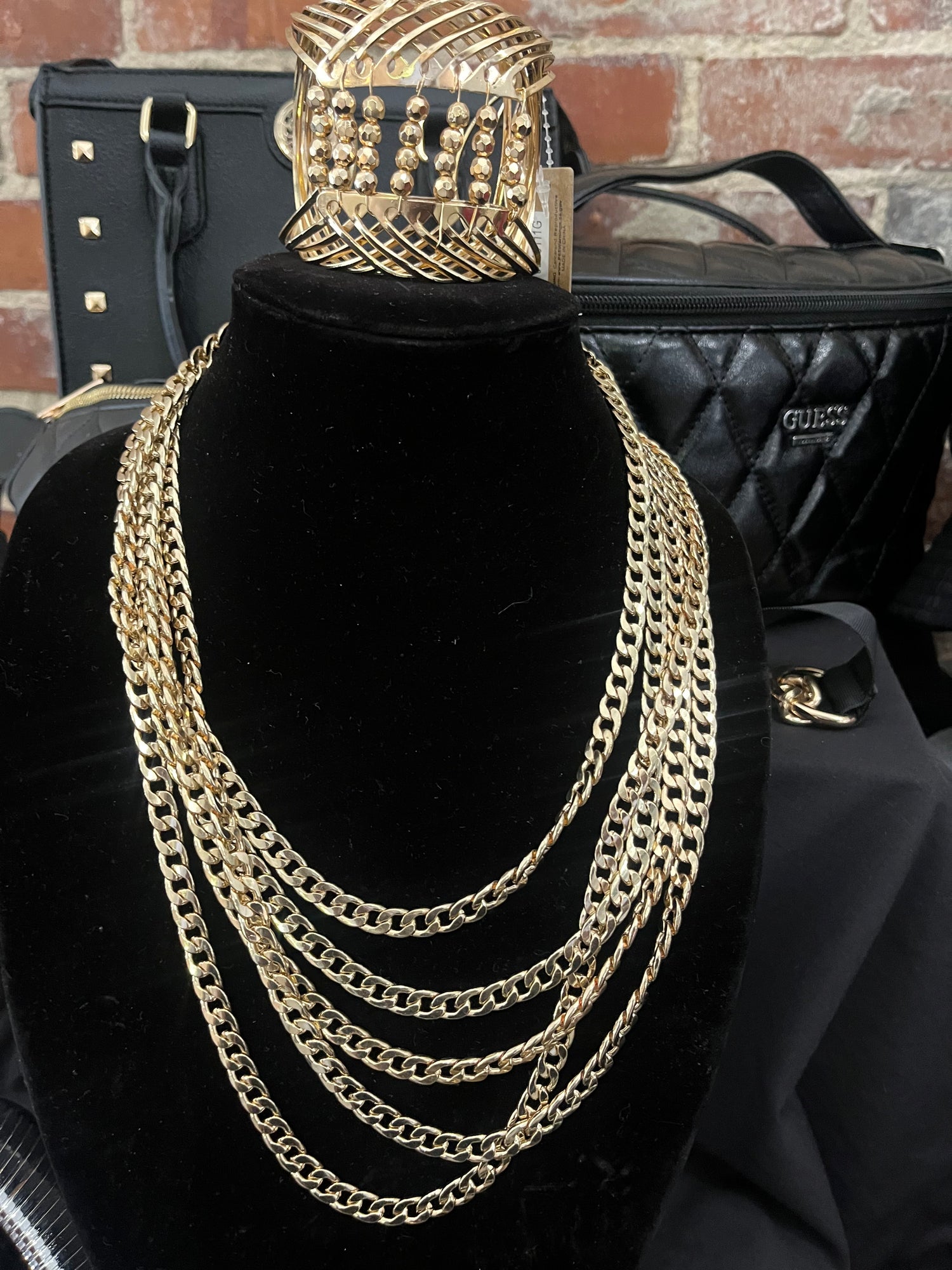 Golden Harmony is an elegant gold necklace and bangle set. With its graceful necklace design and sleek, polished bangle, this set adds a touch of luxury to any outfit, perfect for both special occasions and everyday wear.